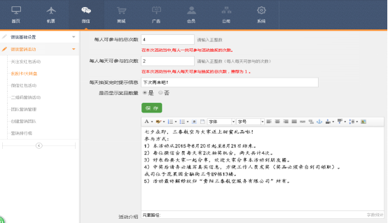 ⑴ 把項目内容根據活動(dòng)要求的設置進行添加,最後點(diǎn)保存,系統會自動(dòng)生成活動(dòng)鏈接。(PS:需在關(guān)鍵詞(cí)管理設置鏈接方能生效)