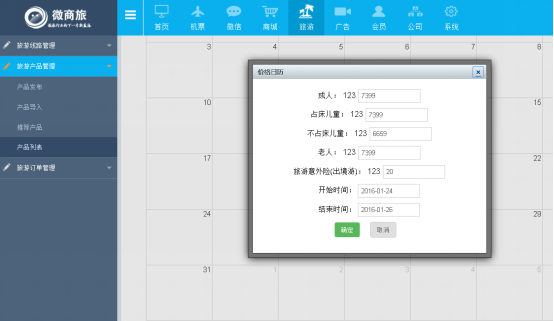 ⑵ ①進入價格日曆,可在上面進行拖拽,選擇旅遊出發日期,點(diǎn)擊確(què)定即可。